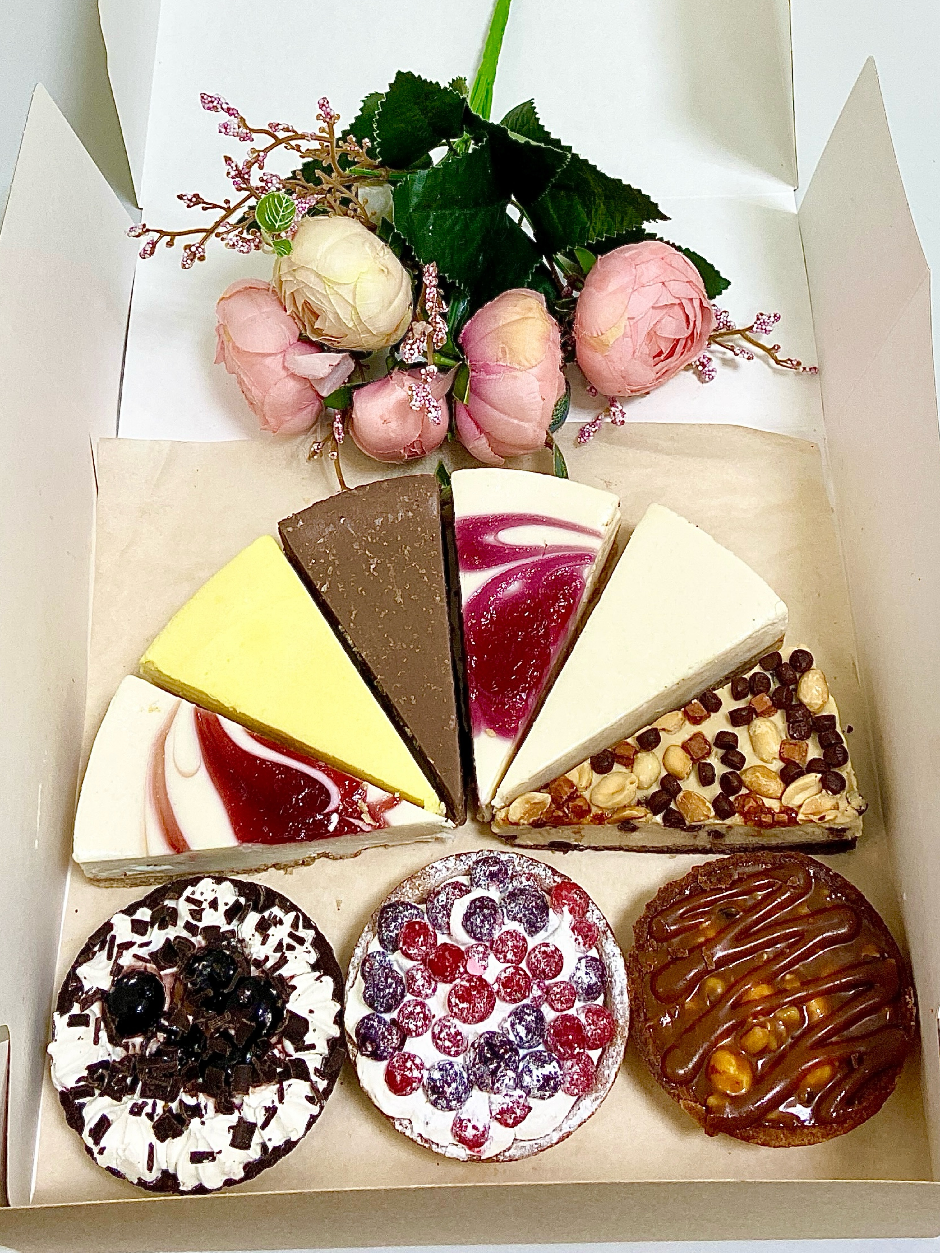 В ассорти входит 6 чизкейков-ассорти и 3 тарталетки (смородина, карамельно-ореховая, вишня в шоколаде)
