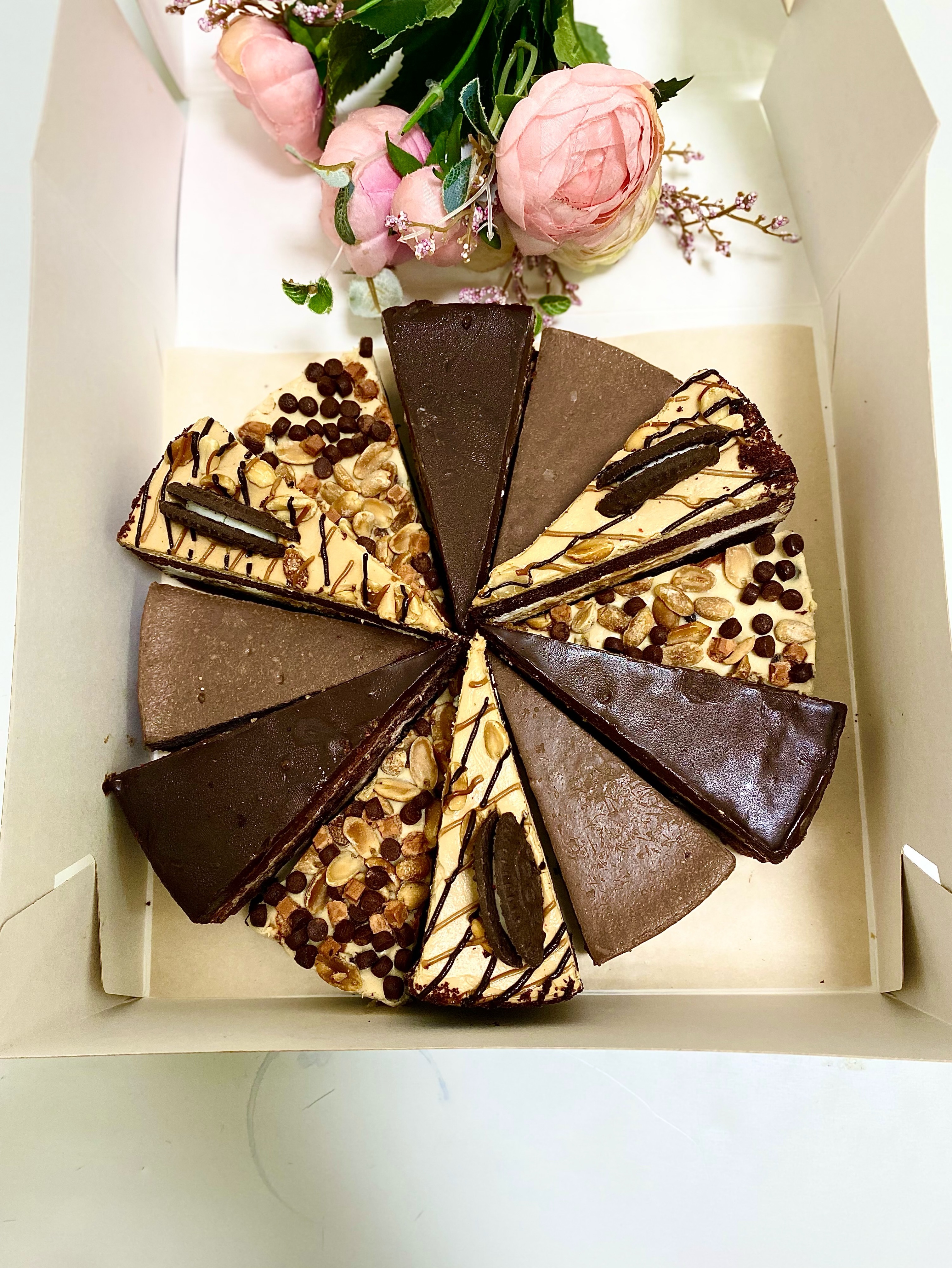 Любимые вкусы для вашей мамочки собраны в одном ассорти: торт Сникерс, торт Прага, чизкейк Сникерс, чизкейк шоколад.